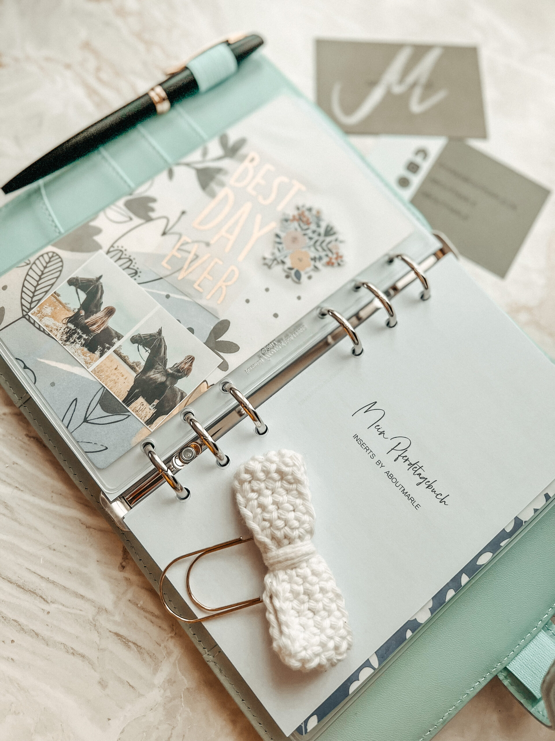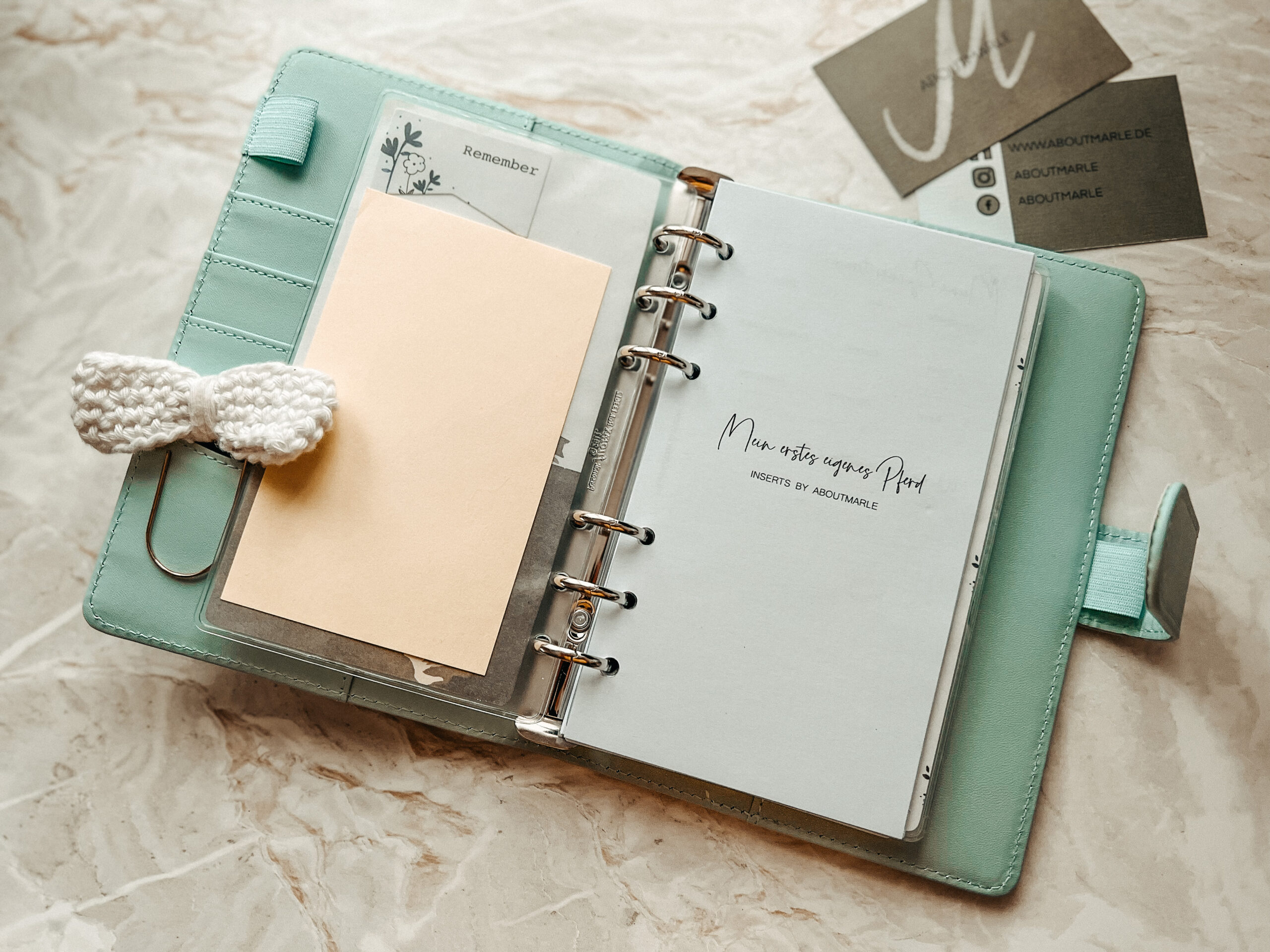 Bekommst du bald dein erstes eigenes Pferd oder hast es bereits? Dann ist dieses Pferdetagebuch genau das richtige für dich! Du hast die Möglichkeit dir deine Wunschfarbe auszusuchen und das passende Insert auszuwählen. Der Binder besitzt zwei Stiftschlaufen und viele Taschen um Fotos oder Paperclips aufzubewahren. Er hat einen Magnetverschluss und eine silberne Ringmechanik. Diese Ringmechanik ermöglicht es dir auch andere Papiereinlagen (Inserts) einzuheften und du kannst problemlos ein weiteres Jahr hinzufügen und alles so gestalten wie es dir gefällt! Je nachdem ob du bereits ein Pferd hast oder erst auf der Suche bist kannst du dich für das für dich passende Insert entscheiden. Die passenden Umschläge für die Umschlagmethode findest du Hier