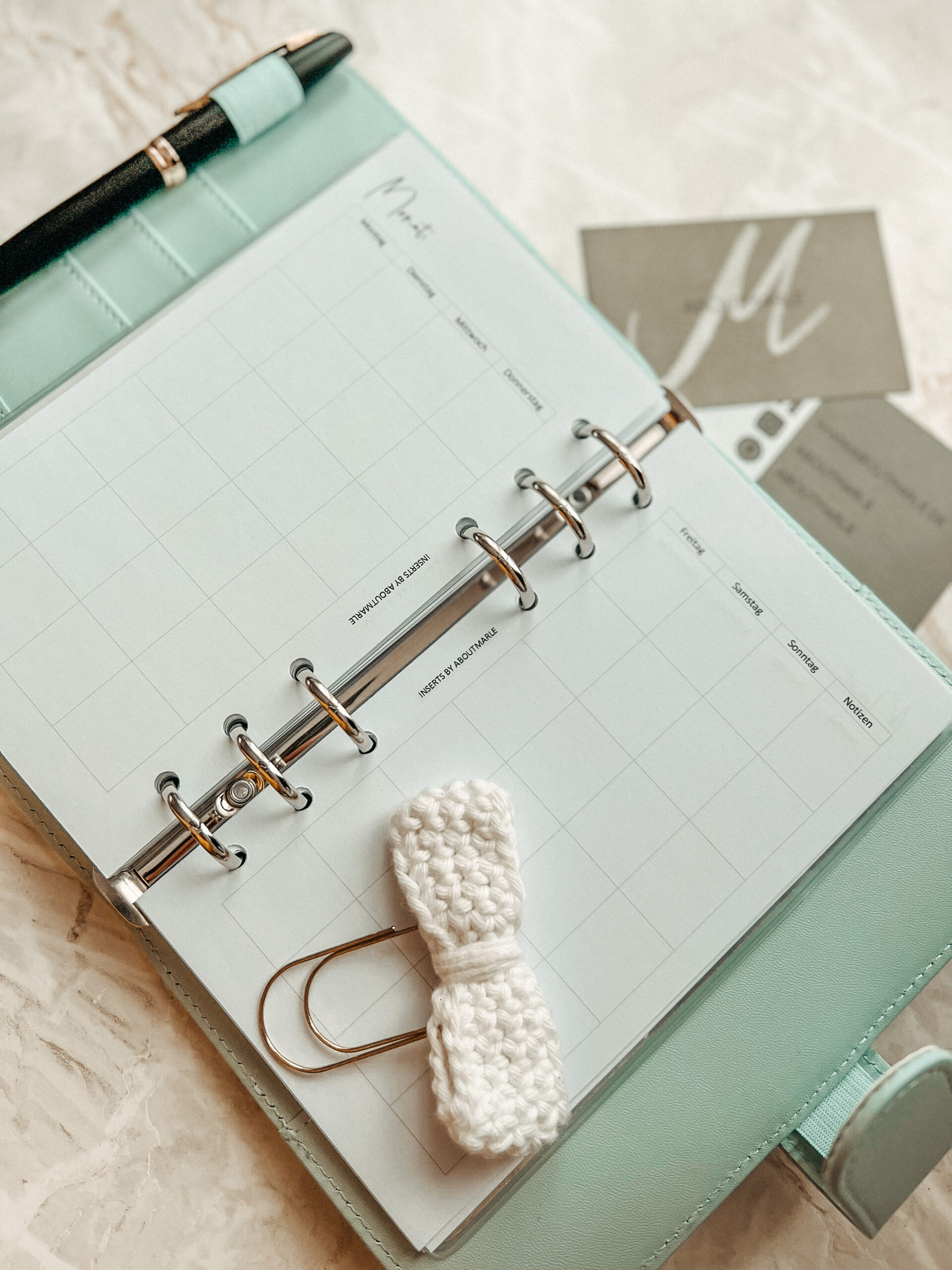 Der Binder ist in der große Personal und verfügt über ein Magnetverschluss und eine silberne Ringmechanik. Durch zwei Stiftschlaufen und vielen Taschen in der Innenseite des Planers hast du hier die Möglichkeit einiges zu verstauen.